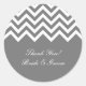 Obrigado de casamento redondo, seus adesivos | Vedante de envelope Zigzag. Cinzas bonitas e padrão de chevron branco com texto elegante para noiva e nome de noiva. Também pode ser usado em seladores de envelopes de rico e em favores de casamento. design de faixa de zague cinza.
