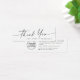 Elegante, branco ou qualquer obrigado colorido para sua compra ou miniplaca de inserção comercial com modelo de logotipo personalizado. Você pode alterar cores, mover e redimensionar elementos com a ferramenta design.