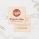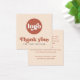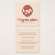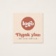 Cartões de agradecimentos comercial quadrado com o texto "Obrigado" em uma fonte com estilo retroativo. Texto marrom Terracotta (ou cor personalizada) em um plano de fundo mais claro. Carregue seu logotipo na frente e adicione texto personalizado na parte traseira. Você pode alterar cores, mover e redimensionar elementos com a ferramenta design.
