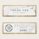 Fundo maravilhoso marmoreado, borda falsa de folha de ouro e detalhes, com texto personalizado e logotipo da sua empresa, design simples elegante, na moda e chic, obrigado profissional para o seu cartão de compra para o cliente. Selecione "Clique para personalizar mais" para ajustar o tamanho do logotipo, remover ou adicionar mais texto.