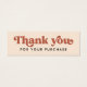 Obrigado pela sua miniplaca de inserção de compra com o texto branco "Obrigado" em uma fonte de estilo retrô. Texto marrom Terracotta (ou cor personalizada) em um plano de fundo mais claro. Adicione o seu próprio logo atrás. Você pode alterar cores, mover e redimensionar elementos com a ferramenta design.