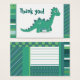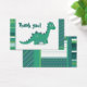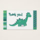 Cartões de agradecimentos para presentes de chá de fraldas com dinossauro sorridente e fofo.