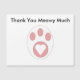 Um cartão postal adorável com uma pata de gato preta e branca com um coração e o texto "Obrigado Meowy Muito". O texto pode ser personalizado para atender às suas necessidades!