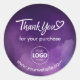 Crie adesivos personalizados Obrigado com nosso 'logotipo aqui' fácil de usar e modelo de folha adesiva 'endereço da Web aqui'. Basta carregar seu logotipo e ajustar o texto para adicionar um site, slogan da empresa ou mensagem. Com um fundo de efeito de aquarela roxa, sua marca comercial se destacará. Um obrigado rápido e fácil - você cola para todos os tipos de negócios, perfeito seja você um comerciante online, um compro de pop, ou um tradicional bistrô, sanduíche ou compro de café.