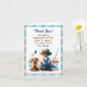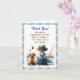 Obrigado, cartões por presentes de chá de fraldas ou presentes de bebê. Uma ilustração adorável e doce da aquarela de um bebê pescando com um cachorrinho. As cores deste cartão incluem azul e laranja.