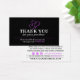 Obrigado por seu cartão de desconto de cliente de compra com o hológrafo designer e glitter. Personalize completamente o texto e os ícones das mídias sociais para sua marca. Obrigado seus clientes e clientes para comprar com você, incluindo isso com seus pacotes e produtos para dizer Obrigados e para dar a eles um código de cupão para uma compra futura para encorajar a repetição de negócios.