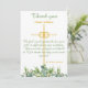 Este obrigado personalizado que você se casou conosco para um pastor ou outro oficial tem folhas de eucalipto de aquarela e flores, uma cruz de ouro e anéis, e mensagem: Nós sentimos muito gratidão pelo seu papel em oficializar nosso casamento. Suas palavras, orações e fé em Deus tornaram nosso dia ainda mais especial.