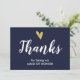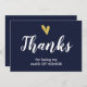 Elegante cartão de agradecimento por ser minha dama de honra com coração de folha de ouro falso com letra branca moderna. A frente e o verso do cartão são em azul marinho chic.