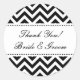 Obrigado redondo de casamento, seus adesivos | selador de envelopes. Padrão córrego branco e preto com texto elegante para noiva e noiva. Também pode ser usado em seladores de envelopes de rico e em favores de casamento.