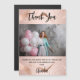 Uma cor de fundo rosa dourada, decorada com veias rosa douradas. Escrita escrita com letras grandes com baloiços e o texto: Obrigado. Personalize e adicione sua foto, obrigado nota e nome.
