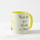O design amarelo pálido da caneca que caracteriza as palavras "agradece-lhe para Beeing um amigo" em um lado, e um bonito bumble a abelha no outro. As palavras podem ser personalizadas a o que quer que você deseja.