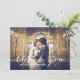 Mande seu obrigado do casamento você mensagem como weds recentemente a seus amigos e família usando isto belamente, obrigado simples você cartão com fotos do casamento com as palavras "obrigado você" escrito em uma folha de prova branca da pia batismal do roteiro. Projete por ELKE CLARKE© PARA A GALERIA do MONOGRAMA. Substitua a foto da amostra com seus próprias.