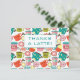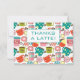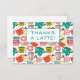 Um cartão colorido de saudação de café e padrão rosquinha. Brilhante e alegre, esta design é perfeita para dizer "Obrigados um latte!" Um cartão divertido para mostrar seu apreço a um amante do café. O verso é vazio esquerdo para que você possa escrever sua própria mensagem ou anexar um vale-presente.