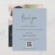 Script de Obrigados Azuis Dusty com Galeria de Fotos de Casamento de Código QR. Um alternativo de 4,5 pol x 5,6 pol com preço inferior. Disponível em um STOCK DE CARTÃO SEMI-GLOSS 110 lb, que é a opção padrão (mais espesso para convites), OU um STOCK de PAPEL THINNER FINISH 80 lb FINISH (ideal para gabinetes). Os envelopes são um extra opcional e são ligeiramente maiores que o tamanho da placa. Um design de tipografia minimalista com um script de estilo de letra de na moda definido para Obrigado. No verso, substitua a imagem por sua favorita do dia como guardiã para seus convidados. Personalize facilmente o resto do texto com sua mensagem e nomes e substitua a amostra de código QR por sua própria guia para sua galeria de fotos de casamento online.