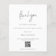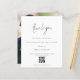 Obrigados da Galeria de Fotos de Casamento de Código QR de Script. Um alternativo de 4,5 pol x 5,6 pol com preço inferior. Disponível em um STOCK DE CARTÃO SEMI-GLOSS 110 lb, que é a opção padrão (mais espesso para convites), OU um STOCK de PAPEL THINNER FINISH 80 lb FINISH (ideal para gabinetes). Os envelopes são um extra opcional e são ligeiramente maiores que o tamanho da placa. Um design de tipografia minimalista com um script de estilo de letra de na moda definido para Obrigado. No verso, substitua a imagem por sua favorita do dia como guardiã para seus convidados. Personalize facilmente o resto do texto com sua mensagem e nomes e substitua a amostra de código QR por sua própria guia para sua galeria de fotos de casamento online.
