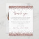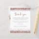 Um valor para o alternativo do ORÇAMENTO em tamanho menor de 4,5 x 5,6" de semirbrilho de 110 lbs, que é de espessura semelhante a um cartão postal (no entanto, não é adequado para uso como cartão postal). POR FAVOR, OBSERVE QUE HÁ UM convite por folha. Rosa Dourado Noivado Glitter Photo Muito Obrigado. As bordas do cinturão rosa dourado estão nas bordas superior e inferior e Obrigado por você está em um script de estilo de escrita manual definido na coordenação do rosa empoeirado. Personalize facilmente o resto do texto. No verso, substitua a imagem de exemplo por uma favorita do seu partido.