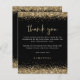 Dourada Festa Glitter Quinceañera Obrigado Black. Um alternativo de 4,5 pol x 5,6 pol com preço inferior. Disponível em um STOCK DE CARTÃO SEMI-GLOSS 110 lb, que é a opção padrão (mais espesso para convites), OU um STOCK de PAPEL THINNER FINISH 80 lb FINISH (ideal para gabinetes). O estilo clássico com bordas de falso brilho dourado está no topo e no fundo em cada lado, e Obrigado está em um script de escrita manual definido na coordenação do ouro. Personalize facilmente o resto do texto. Você também pode alterar as cores do texto e do plano de fundo por meio da opção personalizar mais, se desejar.
