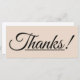 Este obrigado de cartão glamouroso e luxuoso, que mostra a mensagem "Obrigados!" na frente, junto com uma mensagem personalizada no verso. Poderia ser usado para oferecer obrigados a alguém que fez um ato especial.