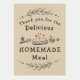Obrigado alguém que tenha fornecido uma refeição caseira a você e a sua família com este cartão com estilo de inscrição manual totalmente editável com a mensagem, "Obrigado pela deliciosa refeição caseira." O design é acentuado com ilustrações florais e de panificação e aparece no fundo do papel kraft processado digitalmente.