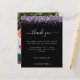 Foto Da Festa Roxa Hen Black Obrigado. Um alternativo de 4,5 pol x 5,6 pol com preço inferior. Disponível em um STOCK DE CARTÃO SEMI-GLOSS 110 lb, que é a opção padrão (mais espesso para convites), OU um STOCK de PAPEL THINNER FINISH 80 lb FINISH (ideal para gabinetes). Os envelopes são um extra opcional e são ligeiramente maiores que o tamanho da placa. Uma borda de brilho de falso roxo está no topo, e Obrigado está em um script de na moda em um fundo preto clássico. Personalize facilmente o texto para seus próprios detalhes. Nas costas troque sua foto favorita de sua galinha de orientação para retratos.