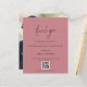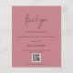 Obrigados Rosa Rosa Dusty com Galeria de Fotos de Código QR de Script. Um alternativo de 4,5 pol x 5,6 pol com preço inferior. Disponível em um STOCK DE CARTÃO SEMI-GLOSS 110 lb, que é a opção padrão (mais espesso para convites), OU um STOCK de PAPEL THINNER FINISH 80 lb FINISH (ideal para gabinetes). Os envelopes são um extra opcional e são ligeiramente maiores que o tamanho da placa. Um design de tipografia minimalista com um script de estilo de letra de na moda definido para Obrigado. No verso, substitua a imagem por sua favorita do dia como guardiã para seus convidados. Personalize facilmente o resto do texto com sua mensagem e nomes e substitua a amostra de código QR por sua própria guia para sua galeria de fotos de casamento online.