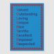 Palavras positivas como valorizadas, excepcionais e únicas compõem as palavras voluntário neste cartão divertido. A design é feita em vermelho e azul e cercada por uma borda vermelha do coração. O texto da dentro diz, "Obrigados para tudo que você faz!" mas pode ser mudado e personalizado para ajustado de suas necessidades!