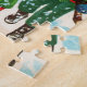 Feliz Quebra-cabeça de Natal com uma imagem de natais vintages muito brilhante e colorida lembrando uma de sua juventude como vemos crianças felizes e alegres trazendo a árvore de Natal de volta para casa depois de cortá-la na floresta.