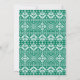 O convite de festas de férias brancas e cheias mostra um padrão de suéter em fundo vermelho, com "vai ficar feio" em letras brancas cruzadas. Personalize com seus detalhes feios da festa de suéter embaixo. Cartões invertendo um padrão de suéter correspondente em verde e branco.