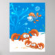 Oceano Aquático Poster de Caranguejo Fofo e Peixe
