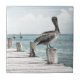 Esta bela imagem apresenta um pelicano marrom e seus arredores naturais, incluindo um oceano azul e um caminho de madeira aflita. Quer queiras usar este azulejo como uma pequena porta copos ou trivit para uma bebida ou prato... ou queres ficar grande com um pano de fundo da cozinha ou azulejo do banheiro, depende de ti! Faça uma parede de cheio, borda, ou apenas um azulejo de sotaque. Deixe seus sonhos de design interior voarem! Azulejo de cerâmica litoral náutica do Oceano Azul Pelicano Azul