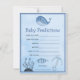 Belo cartão azul de previsão de chás de fraldas com temas de oceano com cor d'água, apresentando um conservador náutico como O em Ahoy. Bons animais costeiros, acima e abaixo do seu belo jogo de adivinhação, incluindo uma baleia e um peixe debaixo do mar. Cartões temáticos de praia adoráveis com data de nascimento, comprimento e palpites de peso.