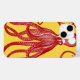 Fabulosa história científica natural antiga ilustração de polvo num campo de Amarelo com micropontos brancos