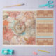 Papel de tecido de 20x30 decoupage de 18 lb com uma colagem de polvo, coral, conchas, starfish e uma bússola no topo de um pano de fundo de madeira curada em formato 20x20. Ao lado dele, no tamanho de 10x20, está coordenando o design do azulejo.