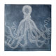 Sonhos de Octopus - Azul-Crepúsculo e Desbotado, Cor Azul-Denim com Ilustração de Octopus Branco Vintage a partir dos anos 1800. Coloração d'água em relevo com a ilustração do polvo do século 19 em tons brancos, denim, azul da meia-noite, azul-crepúsculo, azul-clássico e tons de marinho. Este azulejo de polvo é perfeito para decoração de praia, arte de muros tropicais, decoração costeira, casas temáticas de praia e casacos costeiros. Você também pode personalizar nossos impressões de arte com seus próprios nomes ou citações para criar uma aparência costeira exclusiva e personalizada.