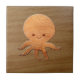 Um polvo de desenho laranja giro. Faux gravou polvo bebê. Azulejos de cerâmica personalizados. Tudo o que se vê está impresso. Não será utilizada madeira nem gravuras no fazer destas portas copos. Ideia do presente.