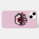 Olho vermelho assustador com pestanas de flores contra fundo rosa macio. Perfeito para aqueles que ousam ser diferentes!
