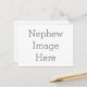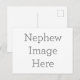Mantenha contato com seu sobrinho enviando cartões postais personalizados do Zazzle! Adicione sua imagem, foto ou trabalho de arte favorita a um cartão postal de vazio, ou simplesmente diga 'oi' adaptando um design pré-existente. É também uma boa maneira de salvar o papel, já que você pode enviar uma nota sem desperdiçar um envelope! Projetar um cartão postal de um tipo é uma tarefa simples, então clique em 'Adicionar imagem' ou 'Adicionar texto' para experimentá-lo por si mesmo.