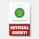 Este design de crachá atraente apresenta a mensagem "OFICIAL CONVIDADO!" e um nome personalizável da empresa ou outra mensagem personalizada. Ele também apresenta uma imagem personalizável do logotipo da empresa ou organização. Um crachá como este poderia ser usado para identificar que alguém em um local de trabalho ou empresa é um convidado/visitante autorizado. [~Z0000307]