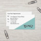 Cartões de visitas de nomeação de loja ótica e oftalmologista em um moderno design de tendências com a imagem de um par de óculos no fundo e modelo de marcação que facilita aos seus pacientes o acompanhamento da sua próxima visita ao escritório.