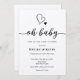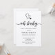 "Oh baby" Convite para Chá de fraldas de caligrafia com roteiro moderno e ilustrações cardíacas
