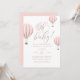 Convide amigos e família para compartilhar a alegria da chegada do seu pequeno com este chá de fraldas, com balões de ar quente cor-de-rosa e elegante tipografia de ouro.