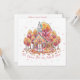 Celebrate the season with a festive card featuring a cozy church surrounded by autumn trees, falling leaves, and stars. The front reads “Oh Come Let Us Adore Him” in elegant pink script. On the reverse side, a printed greeting appears alongside “Merry Christmas” and the sender’s name, making this design both heartfelt and customizable.