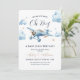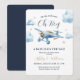 Celebre a chegada iminente de um pequeno aviador com este convite de chá de bebê temático de avião encantador! Com um avião aquarelado vintage, nuvens suaves e tipografia elegante, este design é perfeito para o chá de bebê de um menino.