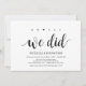 oh sim, fizemos, cartão de convite de recepção de casamento fuga. Este cartão de convite temático de casamento fuga em kraft rústico é perfeito para a recepção do seu casamento e festa de celebração pós-casamento. Adicione seus detalhes em fonte / letra preta correspondente.