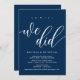 Linda Caligrafia Azul-Marinho Moderna e Simples, Anúncio de Casamento às Escondidas, Cartão de Convite (Oh Sim, Nós Fizemos). Isto é perfeito para a recepção do seu casamento e festa de celebração pós-casamento. Adicione seus detalhes em fonte / letra correspondente.