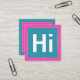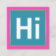 Um design moderno e contemporâneo com um "Hi" ousado e cores brilhantes e uma borda dourada.