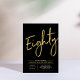 Celebre seu dia especial com este simples e elegante convite de aniversário de 80 anos. Este design apresenta uma escrita "Oitenta" em letra cursiva com um layout limpo na combinação de cores preto e dourado. Mais designs e suprimentos para festas estão disponíveis na minha loja BaraBomDesign.