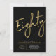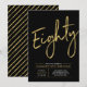 Celebre seu dia especial com este convite simples e elegante para festa de 80 anos. Este design apresenta uma escrita "Oitenta" em letra cursiva com um layout limpo na combinação de cores preto e dourado. Mais designs e suprimentos para festas estão disponíveis na minha loja BaraBomDesign.