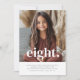 Um simples convite para o oitavo aniversário, com sua própria foto e as palavras 'oito' no topo.