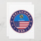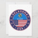 Crachá de Oklahoma com bandeira de Oklahoma e bandeira dos EUA cores, forma arredondada. Emblema de Oklahoma. Selo de Oklahoma. Coleção dos Estados Unidos.